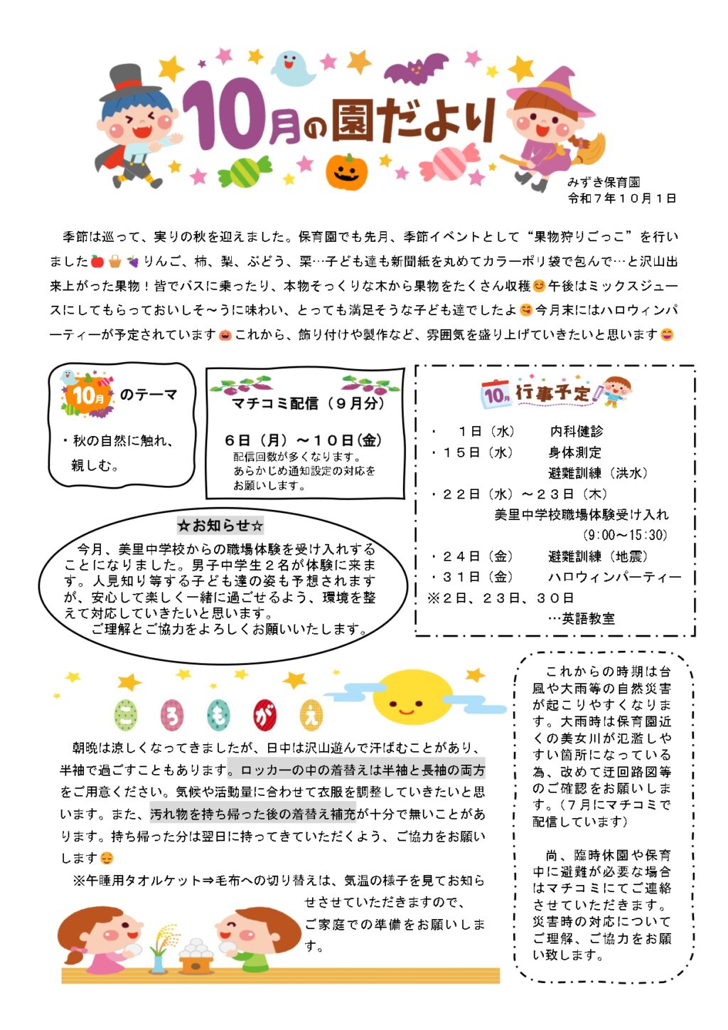 みずき保育園 R7.10月のおたより